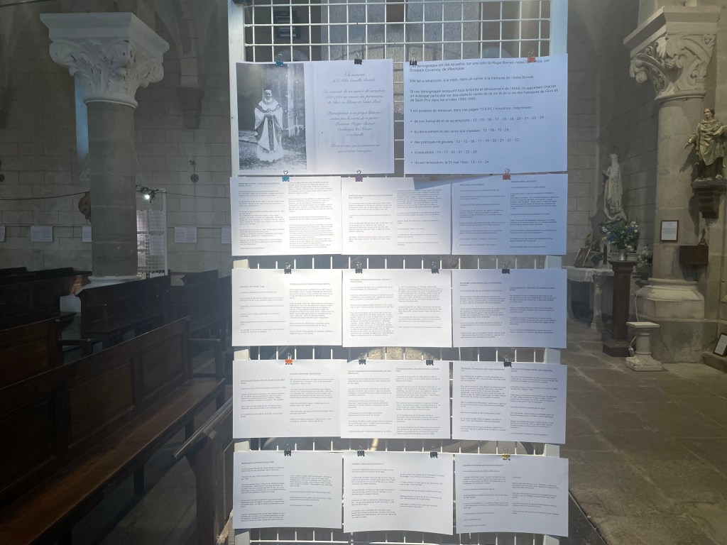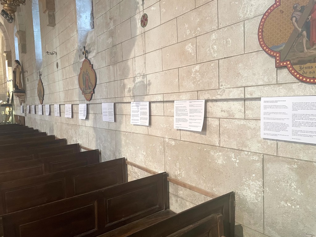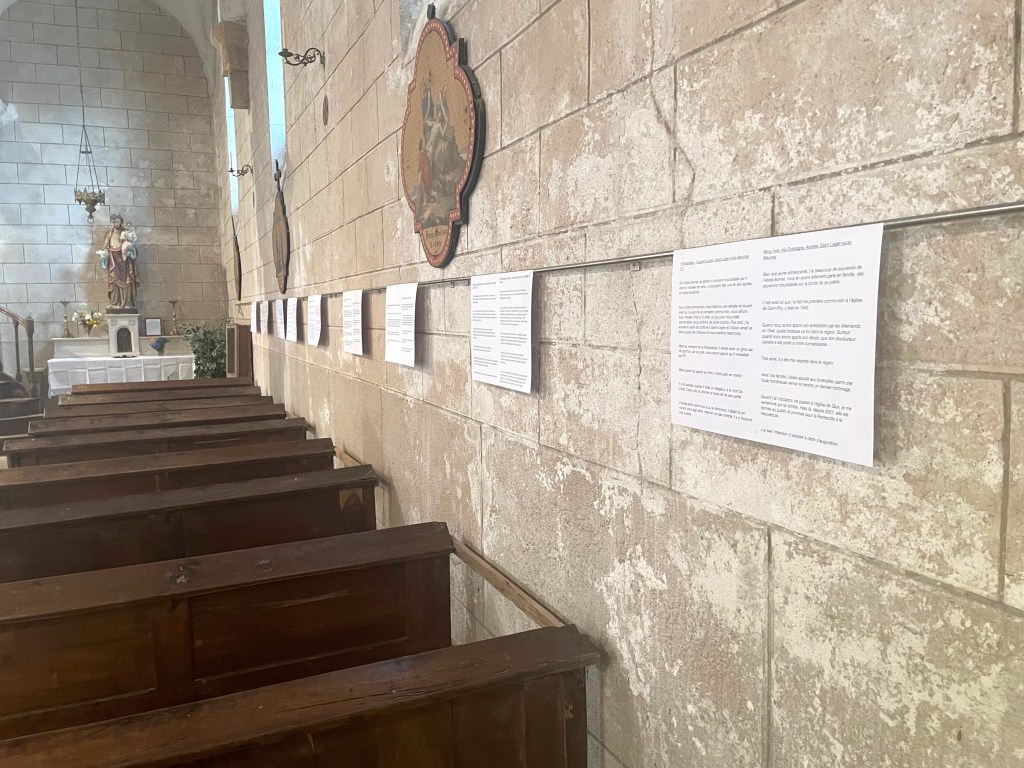 Ces témoignages sont exposés des deux côtés de l’église, ainsi que sur deux panneaux de l’exposition.