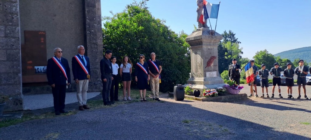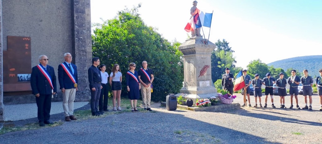 À leur arrivée sur le parvis de l’église de Glux, les marcheurs ont trouvé monseigneur Grégoire Drouot, évêque de Nevers, un peu avant 10 heures. La cérémonie pouvait commencer, en présence de nombreux élus locaux et des communes alentour. La présence d’un porte-drapeau, Stéphane Doreau, descendant d’une habitante de Glux et d’un lieutenant-colonel de l’armée de Terre, achevait de donner un caractère solennel à cette cérémonie républicaine.