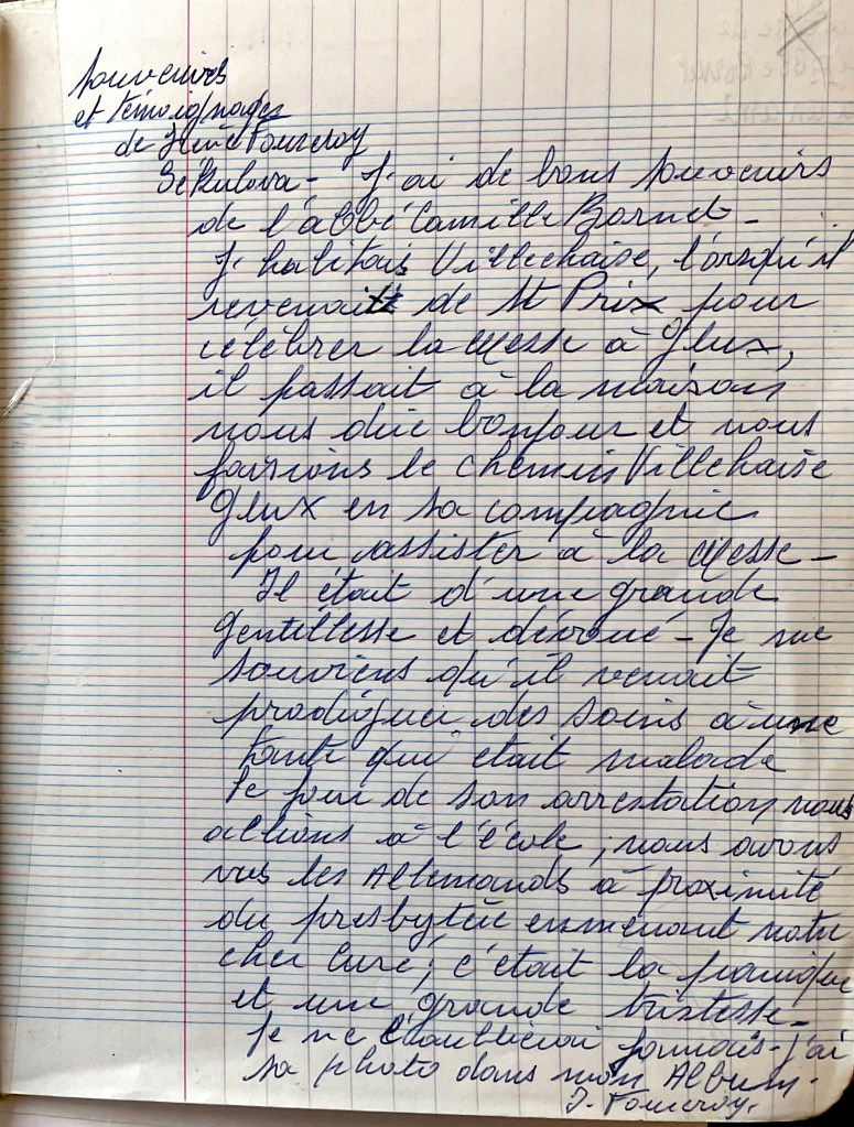 « Le jour de son arrestation, nous allions à l’école, nous avons vu les Allemands à proximité du presbytère emmenant notre cher curé. C’était la panique et une grande tristesse. »