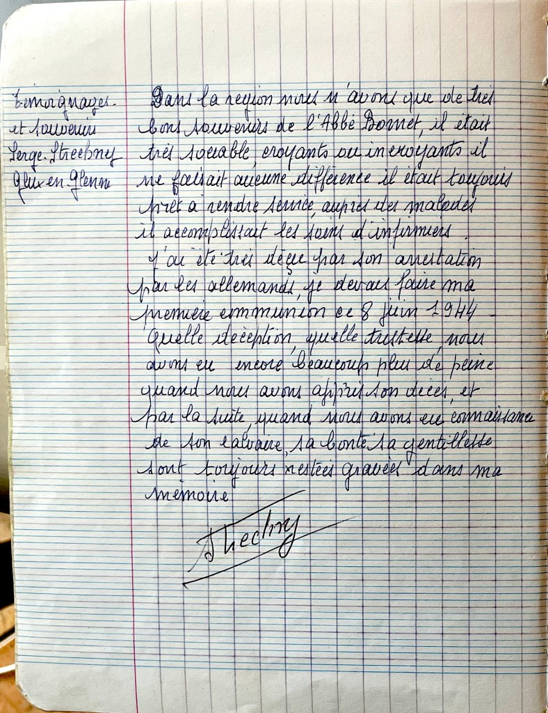 Le jour de son arrestation, nous allions à l’école, nous avons vu les Allemands à proximité du presbytère emmenant notre cher curé.