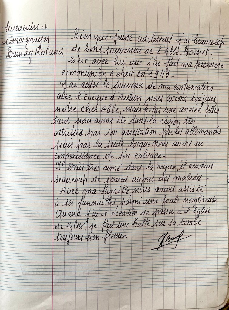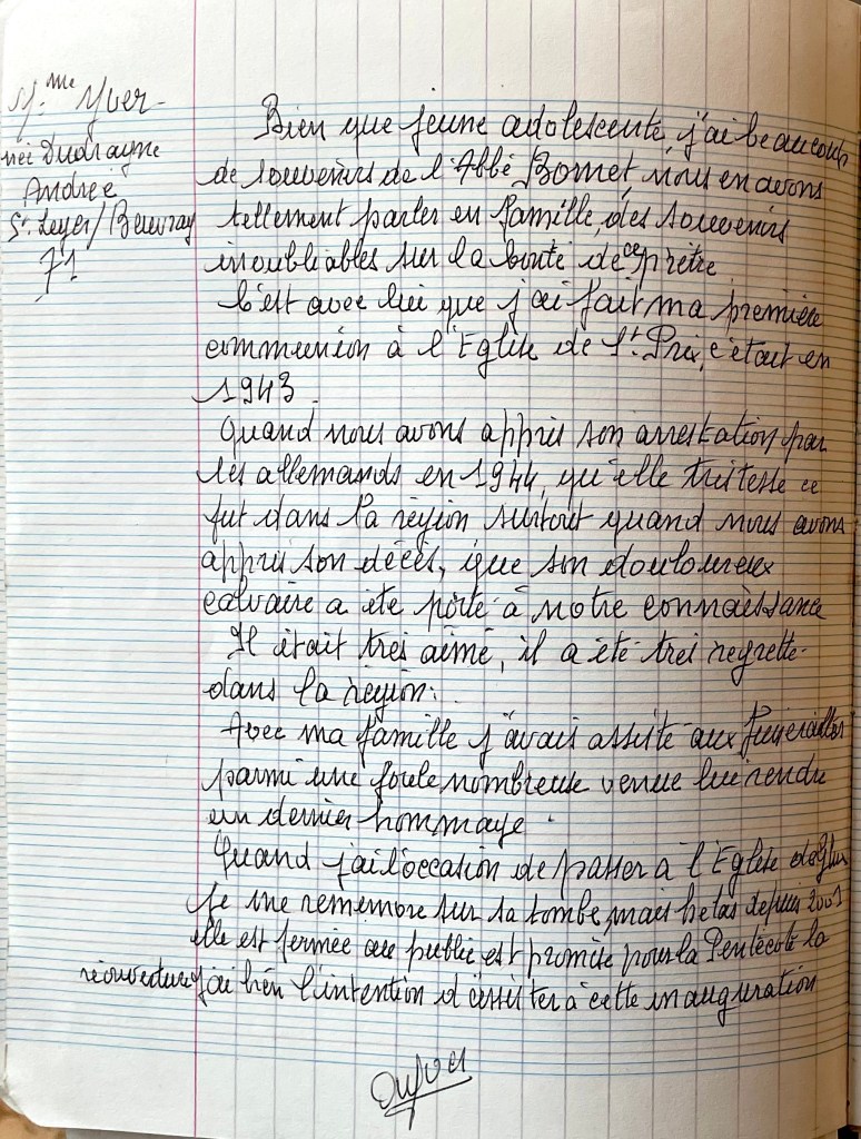Avant que la fête des myrtilles batte sont plein, la commune la plus haute Bourgogne rendra hommage à Camille Bornet, son Abbé martyr en 1944.