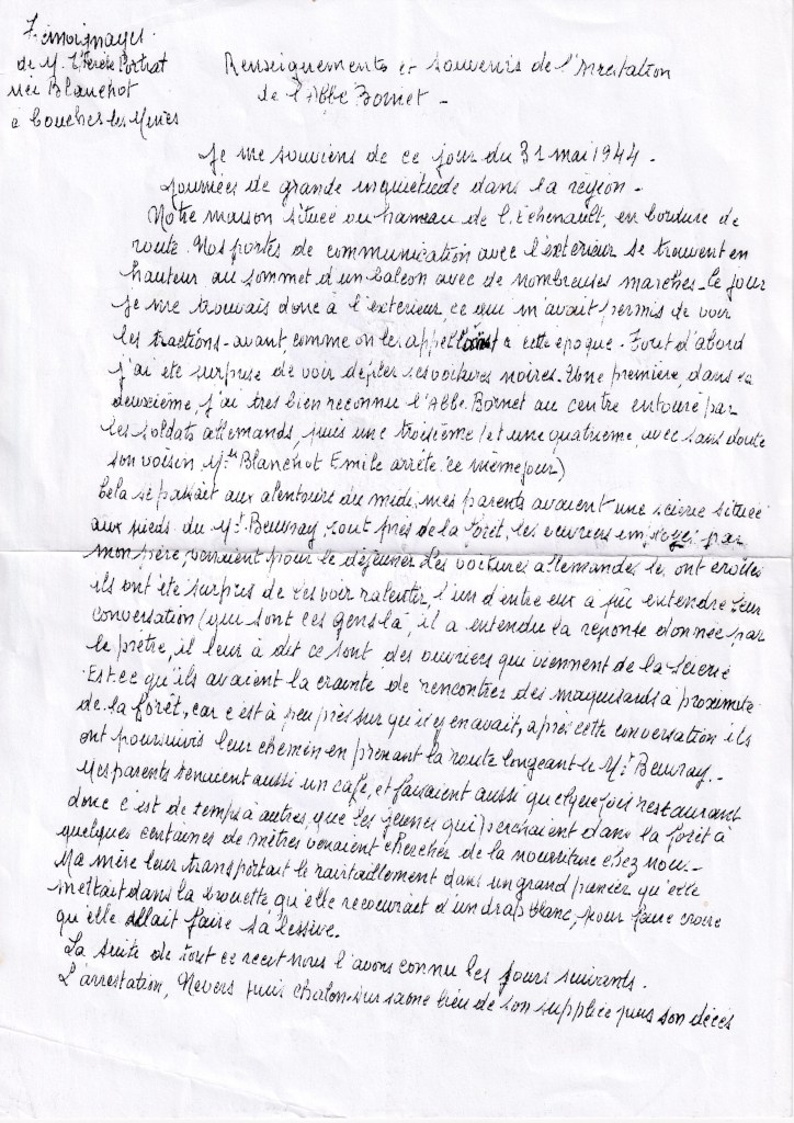 Ce jour-là, il fut arrêté par la Gestapo de Nevers et emmené dans ses locaux de la rue Félix-Faure (aujourd’hui, rue Paul-Vaillant-Couturier). Né à Champlemy en 1896, mobilisé en 1914, ordonné prêtre en décembre 1924, à Nevers, nommé d’abord vicaire de Decize, puis curé de Glux et de Saint-Prix en 1930, Camille Bornet était capitaine en 1939. Fait prisonnier en 1940, il fut libéré en tant qu’officier de la guerre précédente. Il était revenu dans sa paroisse en 1942.
