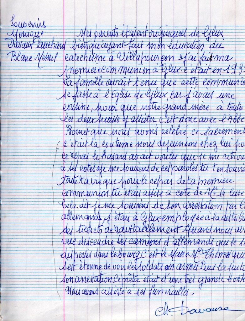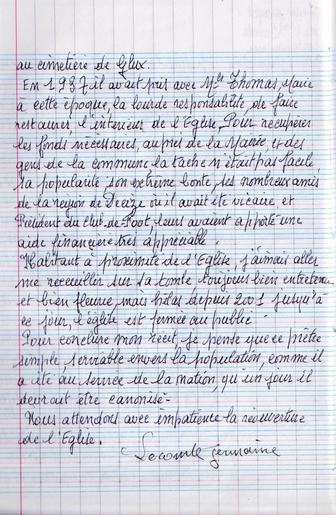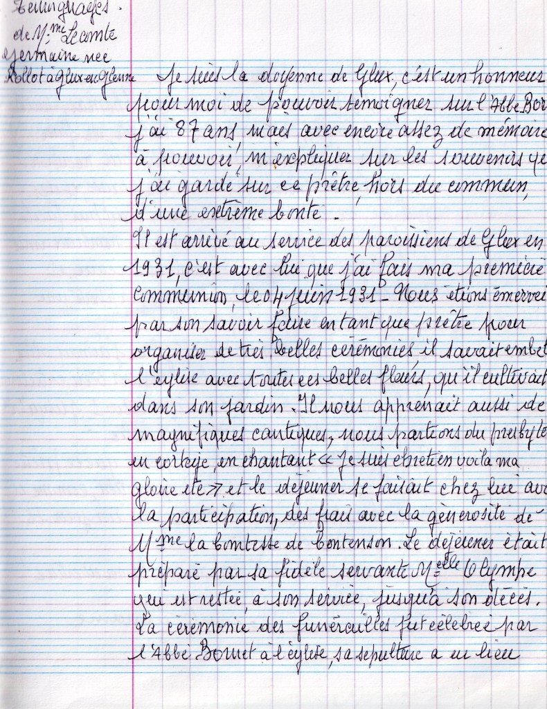 Je me souviens très bien de l’Abbé Bornet, un prêtre très estimé dans les deux paroisses, Glux et Saint-Prix.
