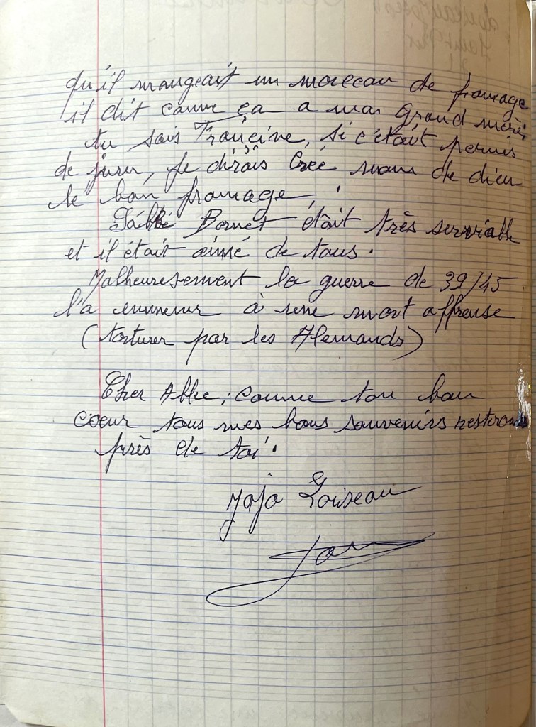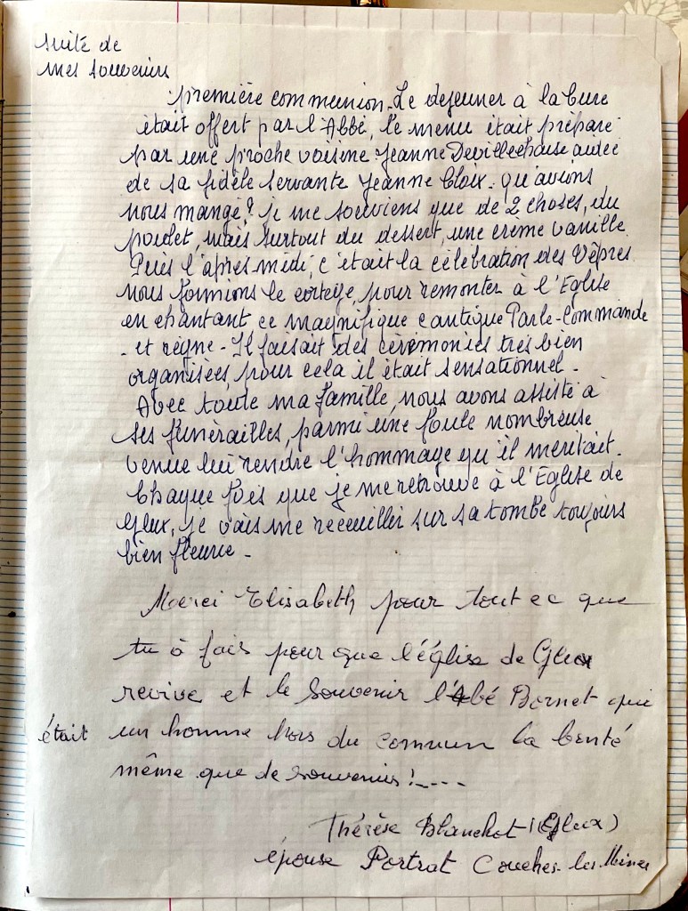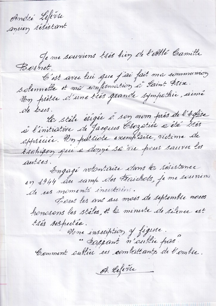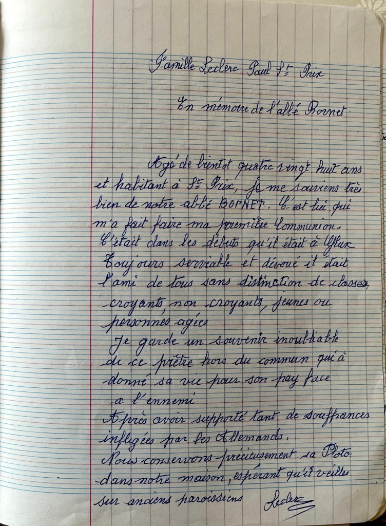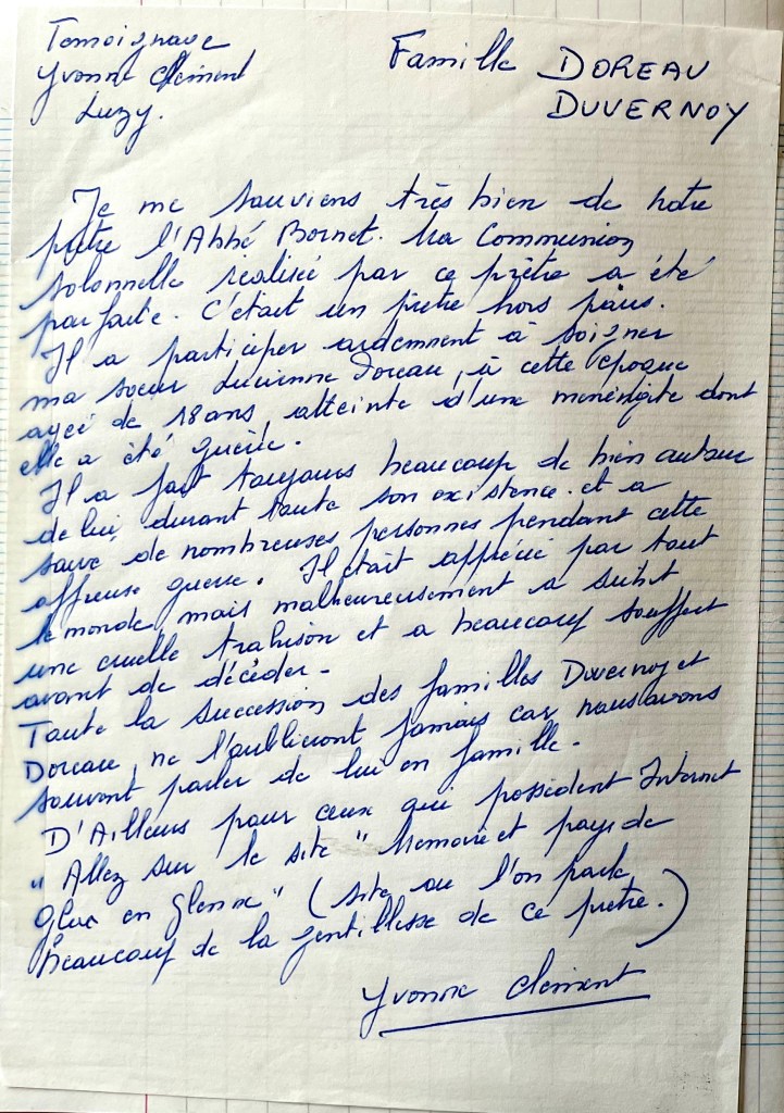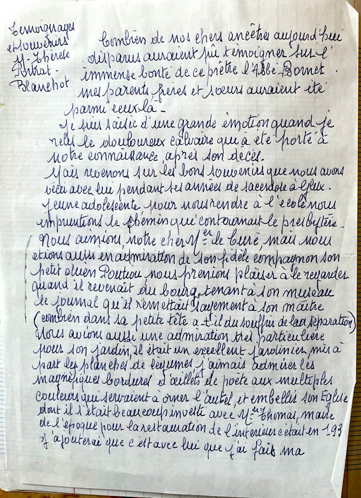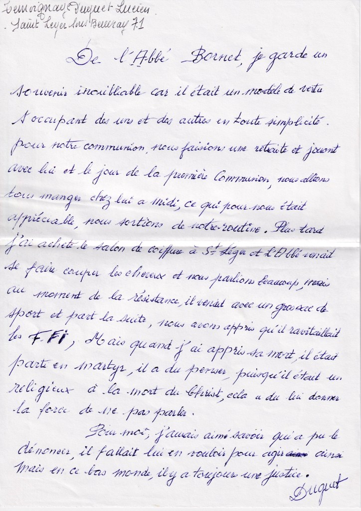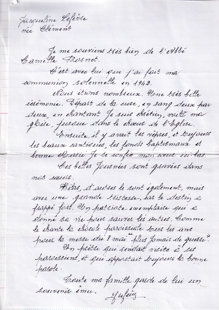 J’ai connu l’Abbé Bornet depuis mon jeune âge et je suis resté très sensible à la mémoire de cet abbé.